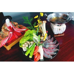 極品鮮魚鍋的重點即在於魚片的部分是使用新鮮生魚片,讓客人可以在清爽的柴魚湯頭川燙數秒品嚐魚的鮮味,或是直接當沙西米食用也可。