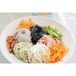 涼麵是最佳清爽的輕食,基本配料內容:小黃瓜、紅蘿蔔、花生是涼麵絕配組合。增加口感豐富性可加購配料,每份只要5元