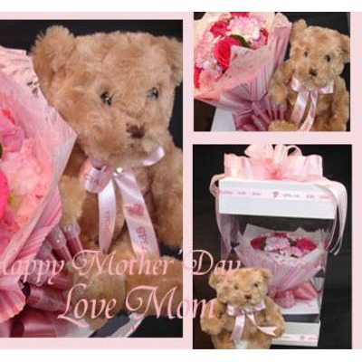 材質(料)說明: 、粉康乃馨、玫瑰、粉孔雀、桔梗、高級盒子、熊30cm