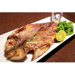 醃漬曬乾後的午魚一夜干在火爐上烤得滋滋作響,魚皮呈現金黃的色澤,油脂也在魚肉裡翻滾。烤好之後,魚皮酥脆焦香,肉質綿密滑嫩,令人口水直流。此外,也可加點金桔提鮮。