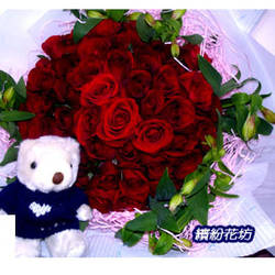 花材:50朵紅玫瑰.水仙百合.裝飾品
