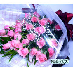 花材:21朵粉玫瑰.深山櫻.裝飾品