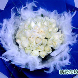 花材:50朵白玫瑰.羽毛.裝飾品
