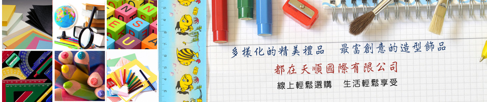 天順國際有限公司經營禮贈品已經5年多,主要是以文具、玩具、禮贈品等商品為主,行銷國內各大知名品牌及各代理商之產品,固定前往大陸台商工廠收購外銷存貨、滯銷品、庫存出清等等,其主要用意在於降低進價成本,創造更大的利潤空間,與消費端共享利益,買的人覺得A到好康,賣的人也是輕鬆簡單,而達到雙贏。