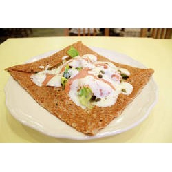 道地的法式薄餅可分為甜食和鹹食兩種,甜食的餅皮是由麵粉和香草豆莢調製而成,口感為軟中帶Q,而餅皮邊邊的部分則是酥酥脆脆的;鹹食的餅皮則是由蕎麥粉來製作,蕎麥的營養價值豐富且同時也具有飽足感。正統的法式薄餅要做的輕薄才好吃,且薄餅的配方採用高品質鮮乳,所以香氣十足,單吃原味都很香。