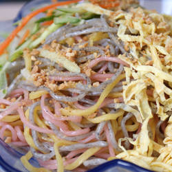 老闆娘說:「在氣溫屢屢飆高的季節,吃冰涼的涼麵的確實很清爽,即使食欲不振,也能輕易入口。」來到這裡,除了能夠品嚐美味的涼麵外,涼麵的麵條講求的就是要有QQ嫩嫩的口感, 老闆娘說:我們不會直接採用一般的油麵, 而是製作專門手工現桿的涼麵,因此店家特別選用由中高筋麵粉製成的生麵, 口感紮實又順口。