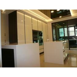 以超白玻璃門板為空間主體,搭配浮凸面深木櫃體,造就渾然天成的高貴氣質 全隱藏式冰箱與電器區融為一體,崁入微波烤箱、咖啡機、炊飯櫃、蒸爐相互輝映 日本電動升降烘碗機、進口隱藏調味架加上無把手設計,線條簡單功能豐富 水幕式抽油煙機吸力強大,保持開放式廚房清潔 全櫃體臭氧殺菌,不只防蟑,更維護家人健康
