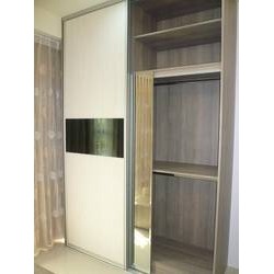 配上黑色葡萄籐薄板,更能突顯整體質感;電動升降捲門櫃,