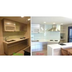 原屋主的廚房格局是雙一型,並附送一套7成新的廚具 業主覺得煮菜空間太小,而牆面後的房間也不需要 在確定隔間牆可以拆除之後 便利用原有的廚具和木作結合,加上新的電器和檯面 獨特的ㄑ字型半開放廚房和開闊的餐廳 讓做菜和用餐都是優閒的享受