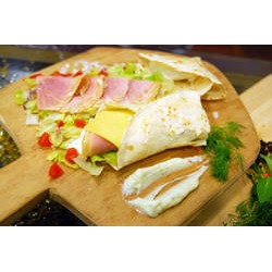 手工自製的餅皮,外層煎得金黃酥脆,內層軟Q,包覆著超厚的牛肉片,香氣迷人,大口咬下口感紮實有勁。