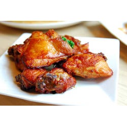 看到烤到金黃的雞塊,表面佈滿油脂..