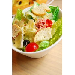 凱薩沙拉除了採用新鮮生菜,番茄外,橄欖,還加上了香蒜麵包,