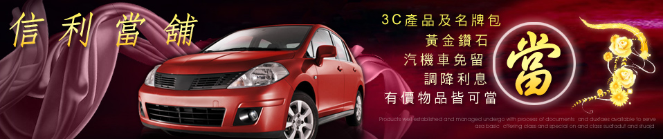 合法利息、安全可靠。營業項目:汽、機車、黃金、鑽石、名錶、3C產品月息4分