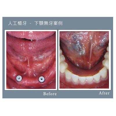 ■ 下顎無牙的患者,於下顎植入2根人工植體