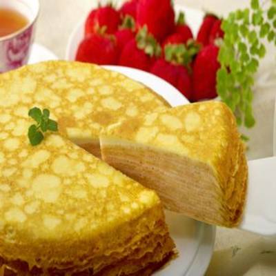 當新鮮雞蛋做成的烘烤蛋皮,遇上了來自日本的濃郁卡士達醬,二種天生絕配的素材再經由最輕柔和細膩的雙手,以純手工方式層層交織18層後,