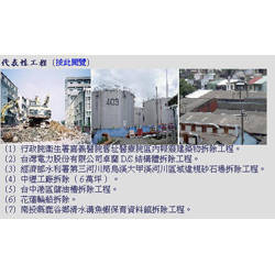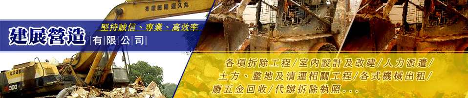 本公司成立至今已二十餘年,從早期的人工的打石拆除一直到今天的重機械拆除,隨著社會不斷變遷、客戶需求的改變,公司經過許許多多的磨練,而這些經歷成為公司成長的原動力,不但打造了穩固的基礎,更在中部地區奠定了良好的口碑。 公司成立初期以人力施工及承包各式小工程為主,而隨著時間慢慢地建立自我風格,也開始有了自己的技術與客戶群,為了堅持品質,便更加要求自身的專業;同時研究拆除技術。而近年來人力成本提高,也開始大量引進大型機具,大幅減少人力成本以及處理時間,走向高效率時代。施工迅速確實是我們一貫服務宗旨,同時講求讓客戶擁有最低的價格與最好的服務品質。 現今主要的服務是承包中部各縣市機關、團體、公司、私人住宅、工廠等之建物拆除、改建、裝潢拆除、垃圾清運、五金回收等,由於營業項目較多,為了加速服務,特設專員為您服務,以最佳的效率為客戶解決問題。 拆照辦理及室內改建:陳經理0921-377212 其他(各式人工、機械點工等):吳小姐0910-417418 整棟建築物拆除或大面積整地:可直撥前述陳經理或是吳小姐 其他疑問或是不知工程屬於何種類別時:吳小姐091... 公司的價格計算方式一向有既定的標準,從來不胡亂加價,也不胡亂報價,除了不同的工作性質(繁多不詳述)有不同的價格外,一般而言有分兩種計價方式,一個是點工的方式,一個是以承包的方式,若概要形容,前者指派多少工、花多少材料就報價多少;後者則是承攬的方式,一個總價做到完工,除非情形特殊(例如業主中途增加施工範圍),否則鮮少額外追加款項。 此外,我們也會為了業主需求作配合,如一般常見的需在夜間或特殊時間施工...等,哄抬價格在本公司是絕對看不到,而超高的配合度卻是我們引以為傲的,客戶想要價格較低廉的方式施工或是要求品質不計成本,全部可以配合報價及施工。