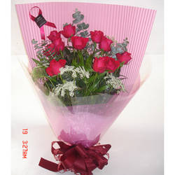 【規格】進口特級櫻紅色玫瑰(11朵)尤嘉麗葉.蕾絲花