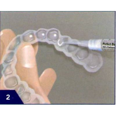 △醫師做完專業潔牙後,會為您印牙模製作個人牙托。您在家裡把牙托填滿Perfect bleach,這漂白膠會在最初的兩個小時之內達到最佳效果,連續配戴一個星期之後即可看出差別