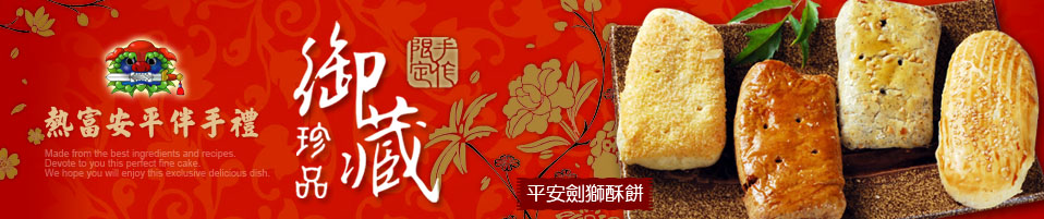 杏仁脆餅/白糖香餅/黑糖香餅/鳳梨酥/古堡餅禮盒(10粒裝)/老公老婆餅/台南古早味軟餡牛舌餅/桂圓蛋糕/素香菇壽桃/水晶紅圓/奶油酥餅/中式喜餅/鹽粒涼糕...